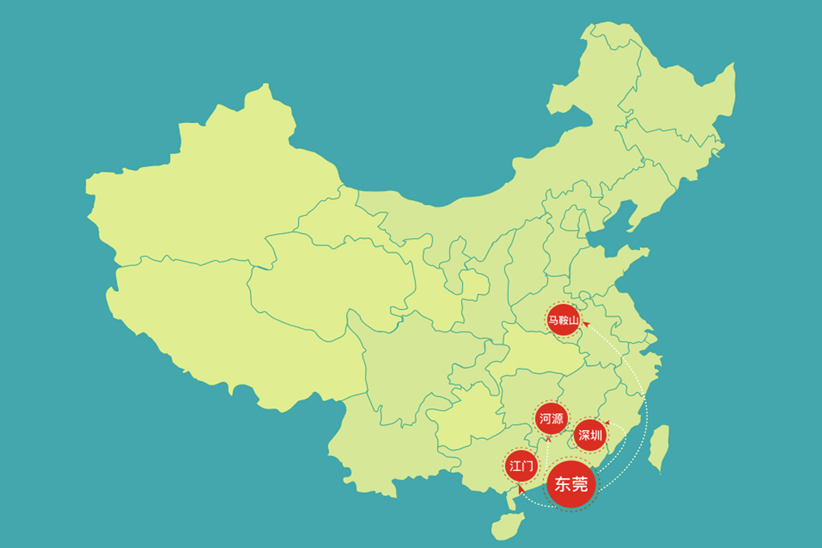 集團(tuán)擁有東莞、江門、河源、深圳、馬鞍山等5個(gè)生產(chǎn)基地,公司的生產(chǎn)、倉庫、辦公及宿舍等占地面積超過200畝,從業(yè)人員達(dá)1000余人。